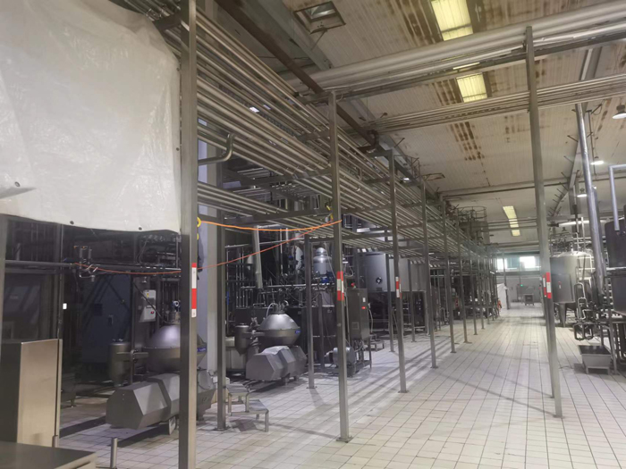 項目概況:15T/H預巴殺一臺(帶凈乳機和均質機),10T/H巴殺一臺(帶分離機、除菌機和均質機),1200L/H稀奶油巴殺一臺,待裝系統一套,五罐四回路CIP站一套,30T無菌罐及無菌系統一套。